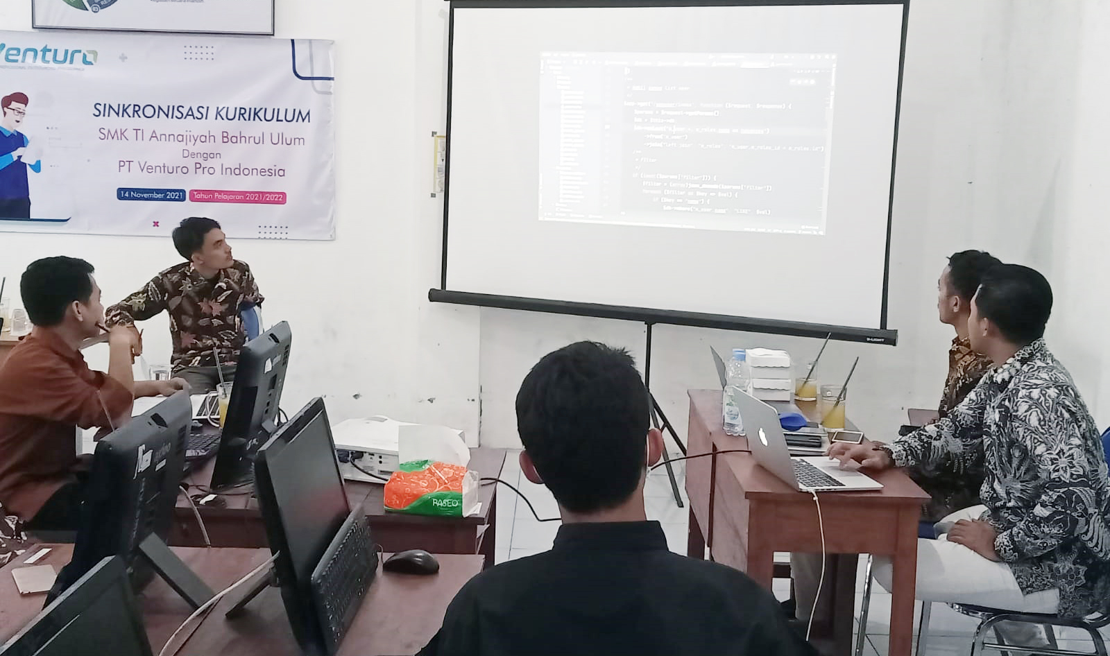 Kegiatan sinkronisasi diawali dengan sambutan Kepala Sekolah. “ saya ucapkan terimakasih kepada IDUKA yang sudah berkenan hadir pada acara sinkronisasi kurikulum, mudah-mudahan setelah kegiatan ini antara Sekolah dan IDUKA bisa selaras kurikulumnya sehingga kelak lulusan mempunyai bekal keterampilan yang disesuaikan dengan kebutuhan IDUKA, maka dari itu masukan sangat dibutuhkan sekali untuk pengembangan kurikulum produktif SMK TI Annajiyah Bahrul Ulum Tambakberas Jombang” jelas Ibu Nadhroh Jauharoh, S.Pd. M.AP. selaku kepala Sekolah. Setelah sambutan, kegiatan sinkronisasi dipaparkan oleh Kaprodi masing-masing Kompetensi yang ada di SMK TI Annajiyah Bahrul Ulum Tambakberas Jombang disesuaikan dengan IDUKA dan dilanjutkan dengan diskusi. Dalam hasil diskusi banyak sekali masukan-masukan yang disampaikan. Diantara masukan dari IDUKA PT. Venturo Pro Indonesia yaitu: